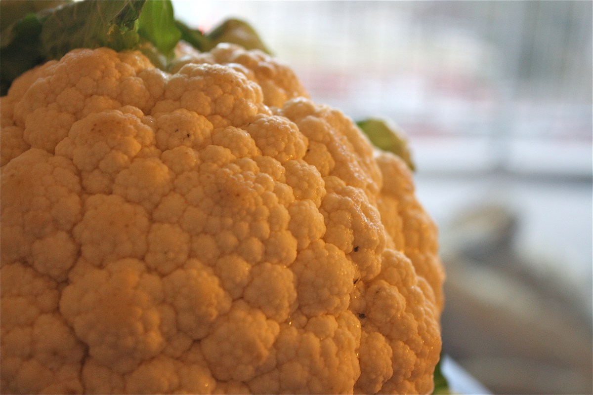 - 1 medium head of cauliflower (~3lbs), trimmed of leaves and cut into 1-inch pieces