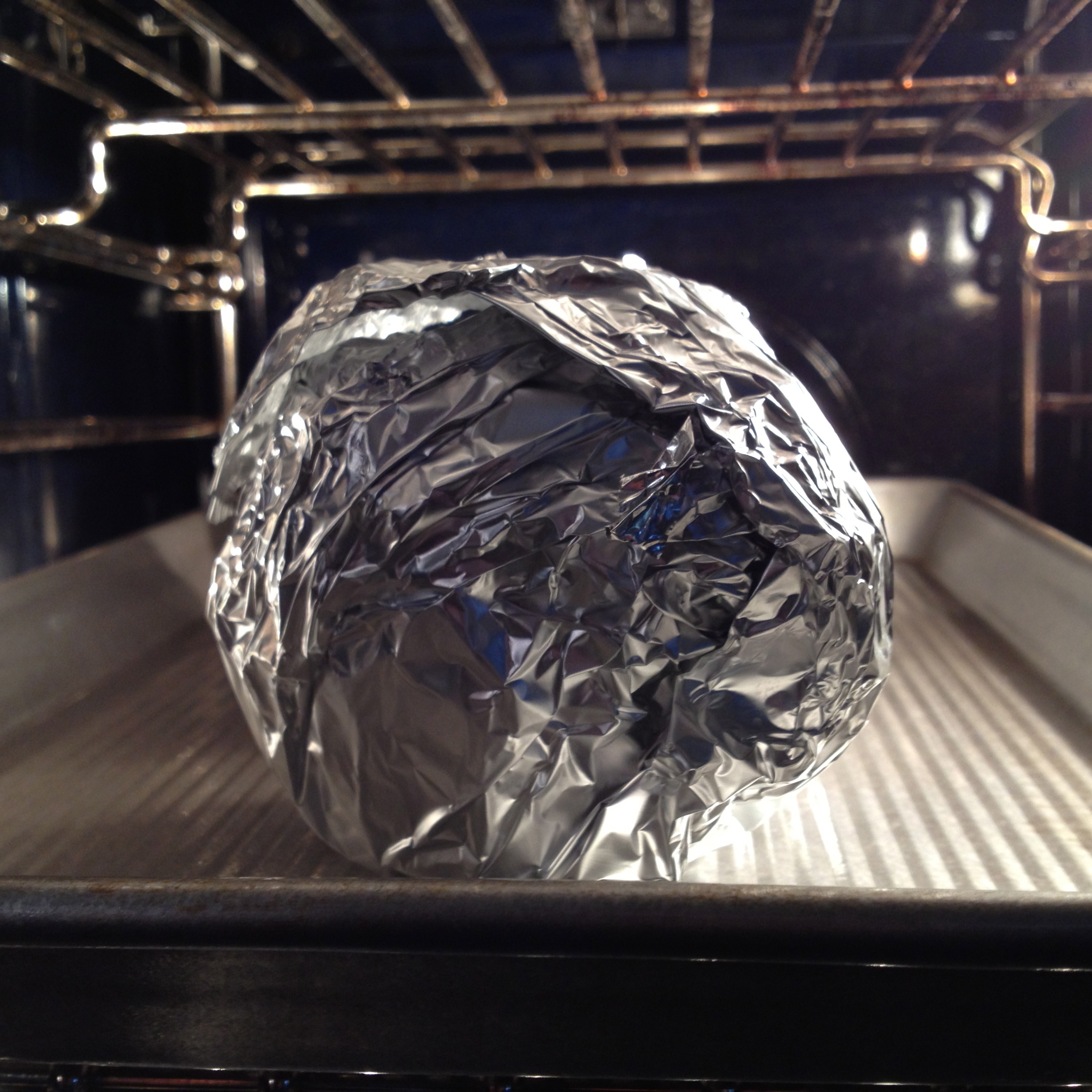I love artichokes. Sadly, I know many people who have never enjoyed an artichoke in its full glory. A whole artichoke is far removed from canned artichoke hearts, and is an experience in and of itself. Despite what you may think, they are not difficult to prepare. Sure, they look all weird, but you just have to lop a bit off the top and cut off the stem. If you have another minute, tear off some of the tough bottom leaves and trim the rough tops of the outer ones. To finish, drizzle with olive oil, generously season with salt and pepper, then wrap in aluminum foil and toss into a hot oven for about an hour.