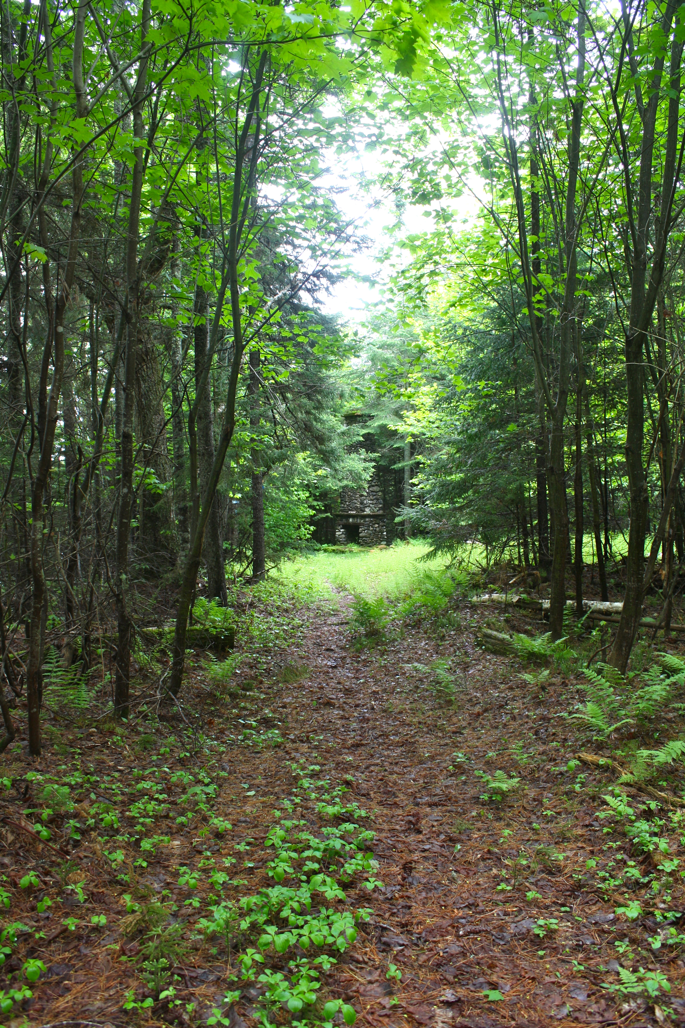 I’m inspired by the smell of garlic on my fingertips, woodsmoke in the air, and pine resin warming in the sun; the buzz of dragonflies in my ears instead of cars, going for long walks and seeing moose tracks instead of sidewalk cracks, and waking to the call of the phoebe instead of an alarm. The old remains of this chimney still inspire me a month after I first saw it and after countless walks by it I still see something new.