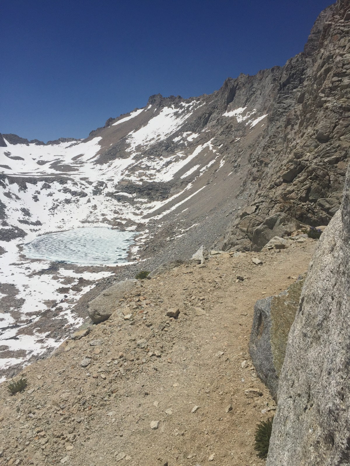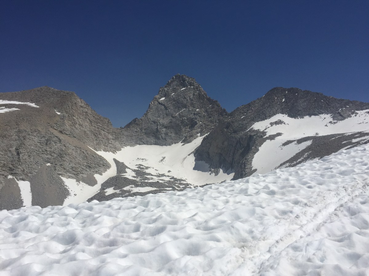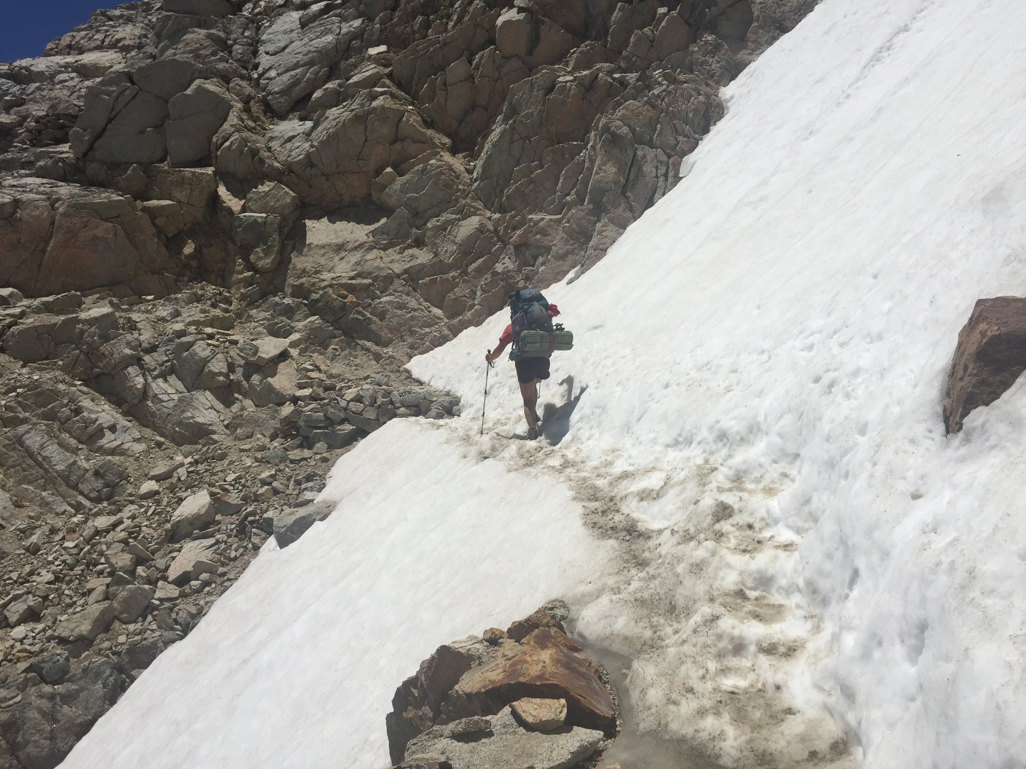 The next day had more climbing in store for us, as we climbed Forester Pass; the highest point of the PCT at 13,118 feet. The pass can be difficult, as there is a snowy traverse across a steep mountain section; but when we got there it was passable without any special equipment. We put on our microspikes, which are like mini-crampons, to be safe though!