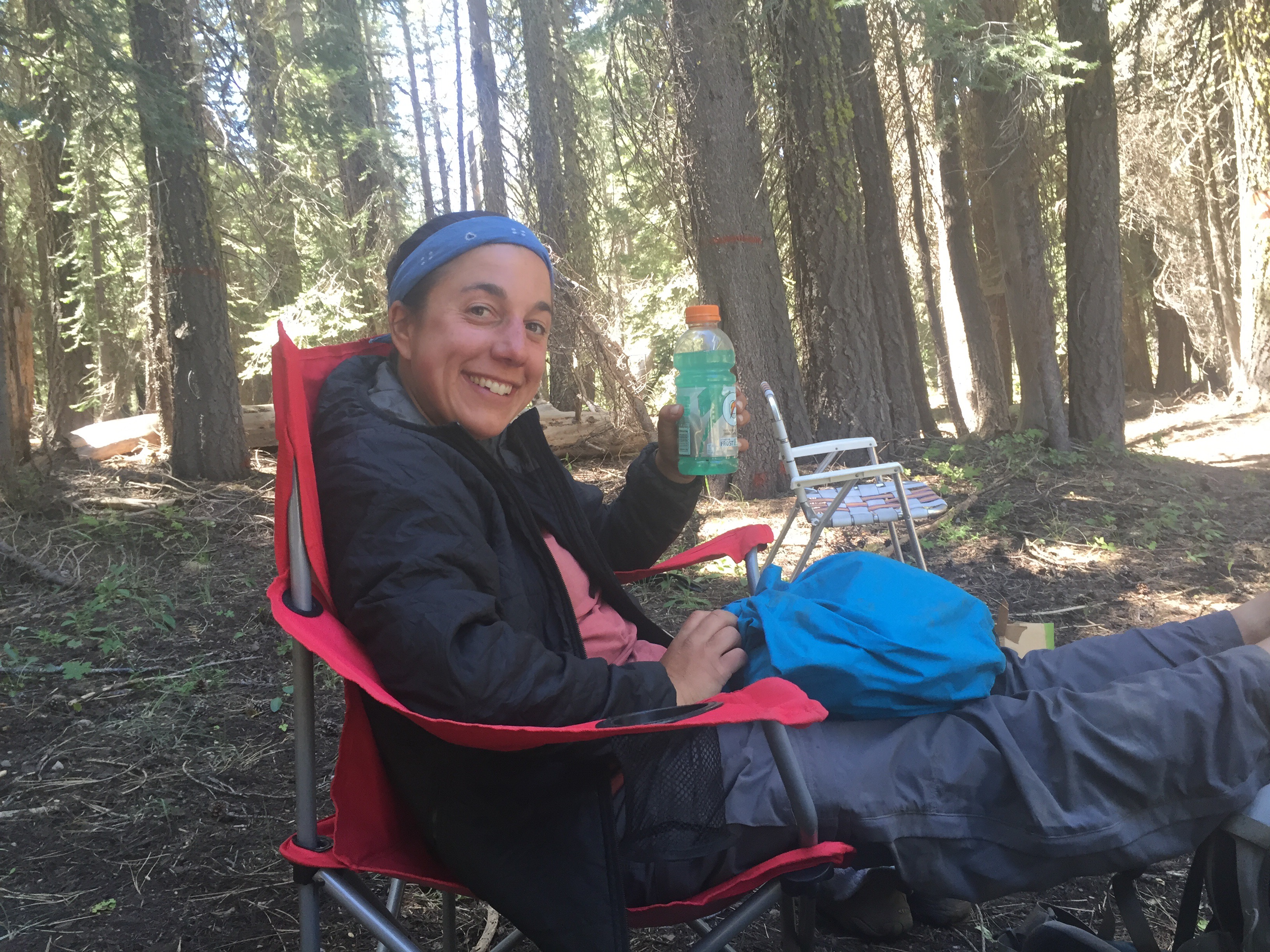 Day 74 started off a bit slow; I was feeling tired, and our hike quickly brought us up to a windy ridge. It took us awhile to find a sheltered spot to have second breakfast, and by the time we did I was definitely ready for a break. After the break, we headed downhill with hopes of reaching the river by lunch. A couple hours later I was surprised we hadn’t made it to the river yet, and started to get discouraged- but then, I saw two day hikers who offered me a cold Gatorade and said I should take another one when I hit the cooler they left by the river in about a mile. It totally boosted my spirits, and the last mile went quickly. They had left behind lawn chairs for hikers to sit in, so Garrett and I enjoyed our second Gatorades and lunch in comfy chairs for a change.