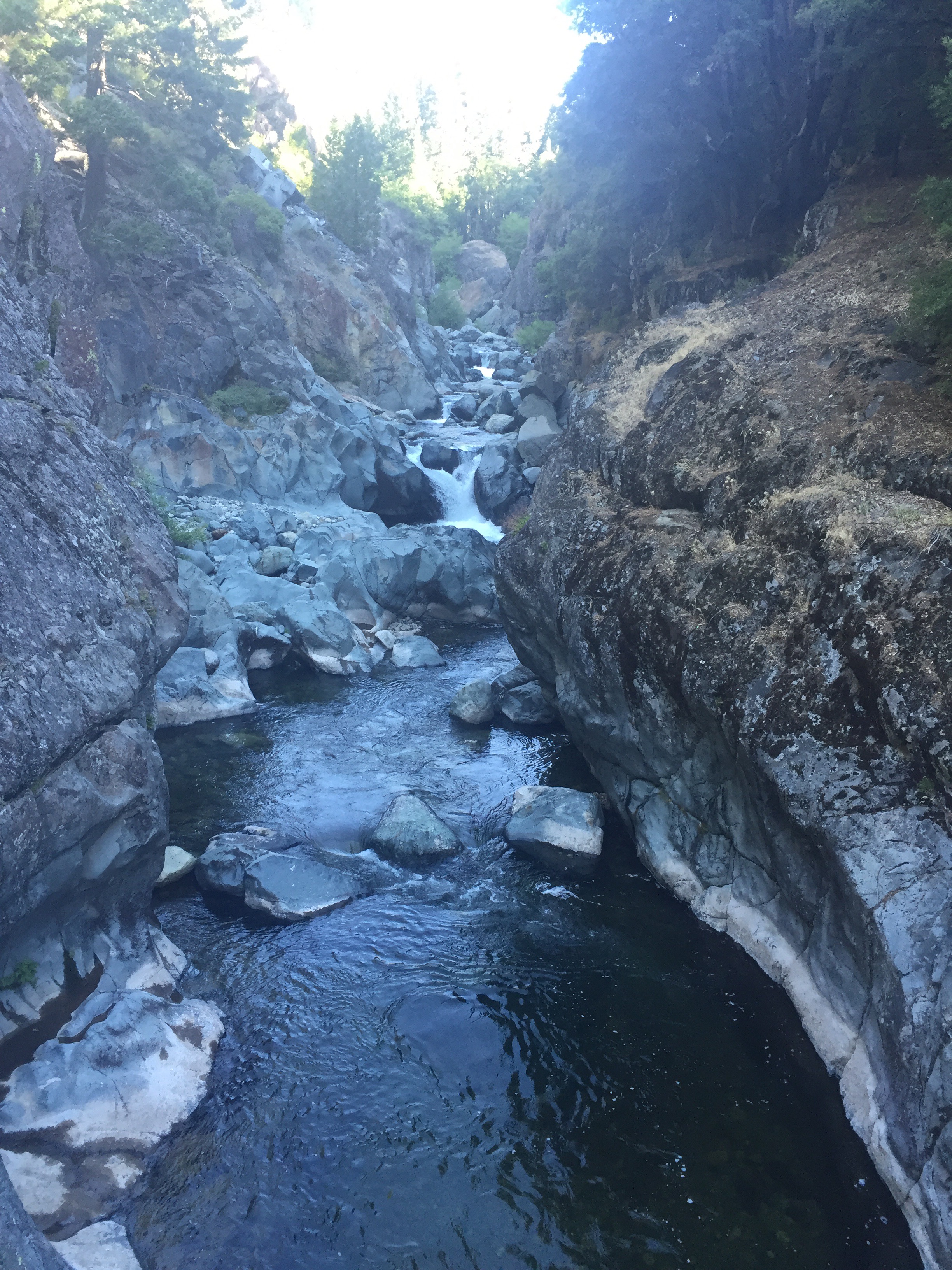 On day 77 we lost all of the elevation we gained a few days before, and then some, as towards be end of the day we dropped way down into a canyon. As we descended down the forest changed dramatically from all large old softwoods (with huge pine cones!) to mixed forest, and finally mostly hardwoods. At the bottom we crossed a bridge over the middle fork of the Feather River, and camped nearby. We went swimming, rinsed normalize clothes, then crawled into our tent as the sun went down.