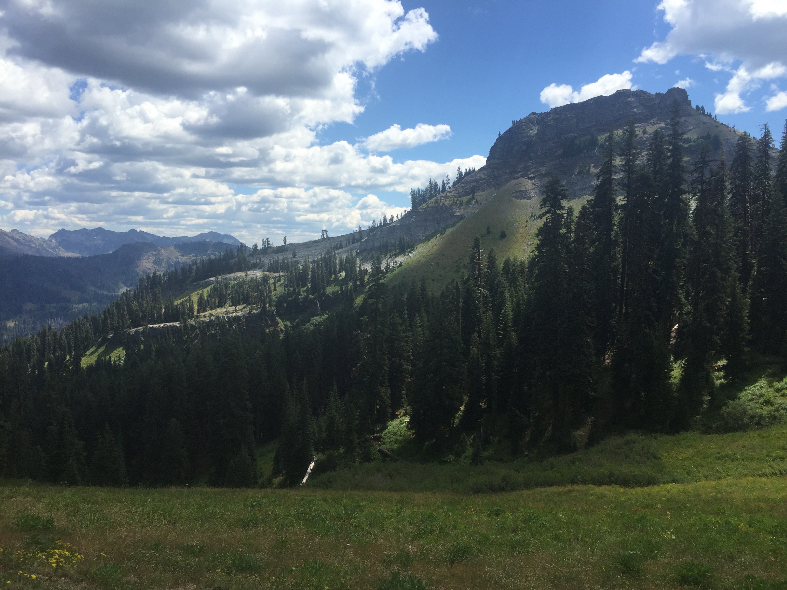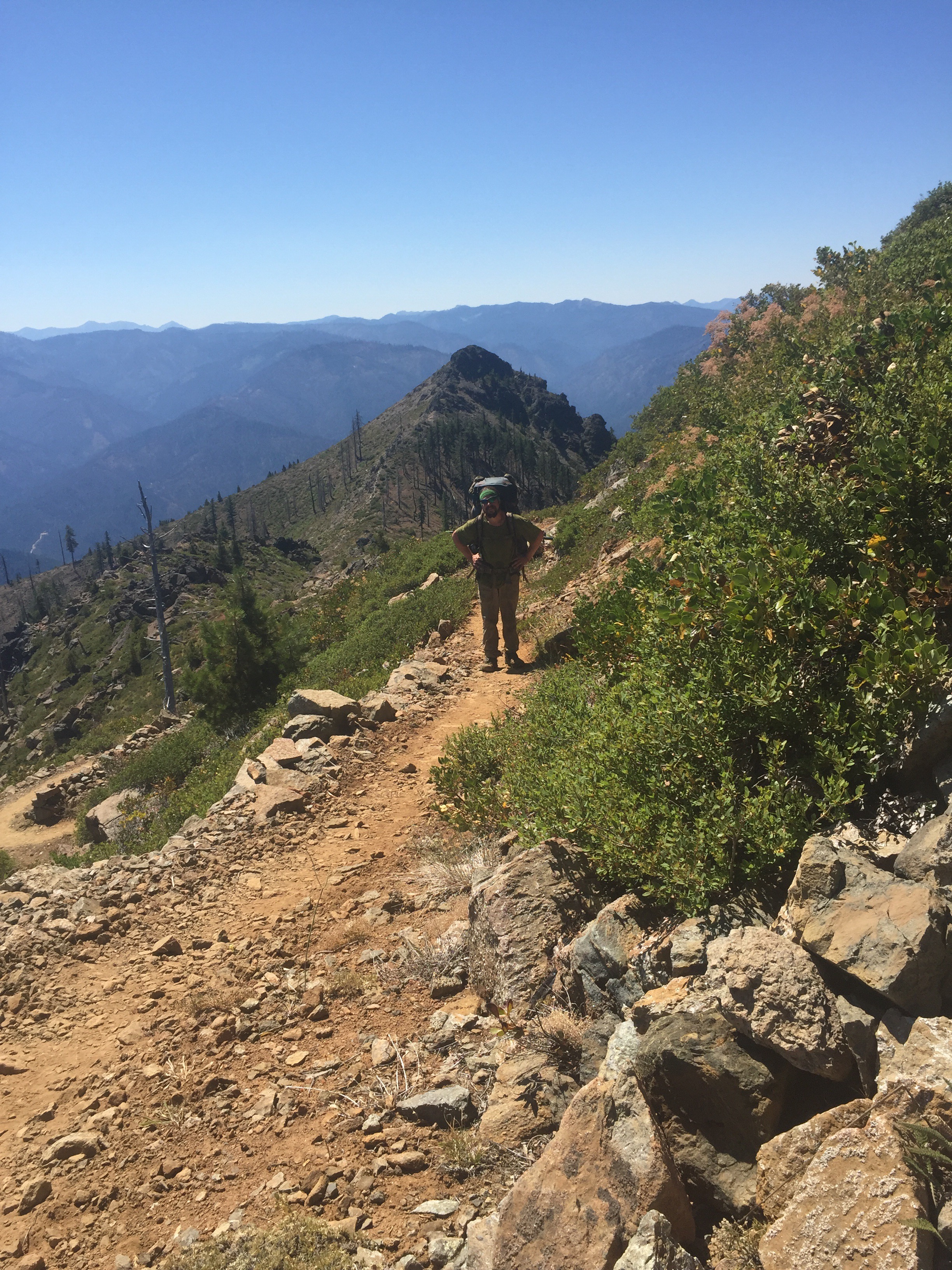 The next day we entered yet another wilderness, the Marble Mountain Wilderness. As we were enjoying out lunch, a team of fire jumpers walked by. They had parachuted in a few days before to contain and stop a forest fire that had been initiated by lighting (the same storm that brought us the hail). Throughout the day we could see way down to the valleys below. It was a quiet day on the trail, we only saw a couple other hikers, and passed 1600 miles on the PCT!
