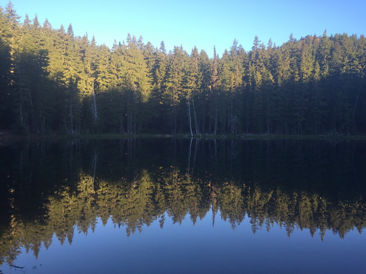 We woke-up to a nice sunrise on Summit Lake, and made our way into Diamond Peak Wilderness. There was thankfully more water than the day before, and the miles came easily. Garrett was feeling much better, too! Which was well timed, as we ran into some thru-hikers who’s parents were out for the week meeting-up with them and BBQing. They invited us to join them, and we made it to the road in time for beer, cheese & crackers, and hot dogs. It was delicious, and it was very kind of them to include us in the feast! Afterwards, we hiked a few more miles to Lower Rosary Lake and made camp (we’re getting spoiled camping by water two nights in a row!).