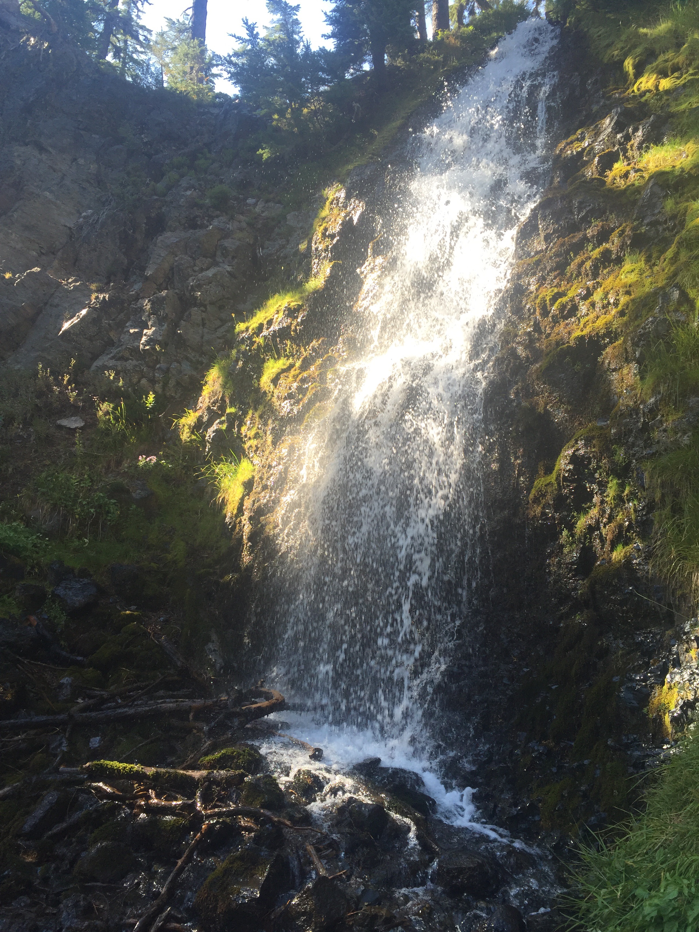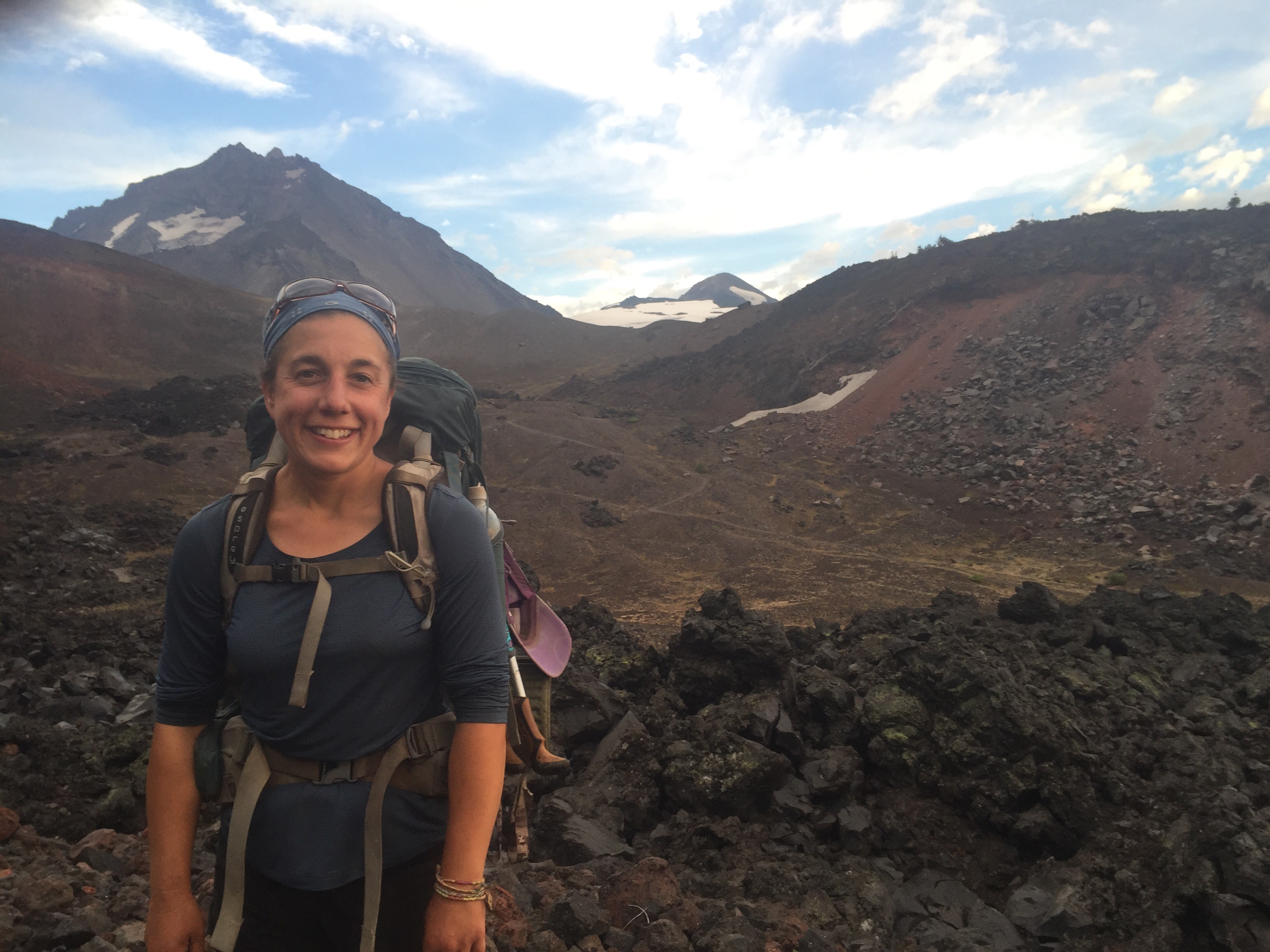 The next day we entered the Three Sisters Wilderness, and saw views of the Three Sisters mountains for most of the day. The mountains still have glaciers on them, and we were able to collect water from a glacial spring! In the afternoon we walked through the Obsidian Falls area, and there was obsidian everywhere!