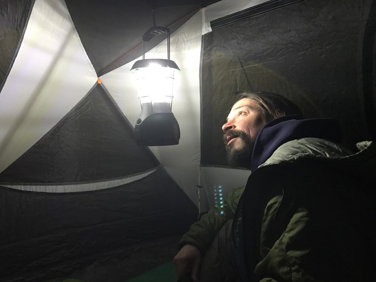 We retraced our steps and eventually made it back to the visitors center around 5pm, with dry feet and feeling like we had had a day well spent. We set-up camp at the park’s small campground, and unsurprisingly we were the only people there. We made macaroni and cheese on our two burner camping stove we purchased for car camping, and in the process realized we’d forgotten a few food items we had wanted- like hot sauce, extra cheese, and broccoli to make dinner a little more exciting. We still have a thru-hiker mentality to food! We added some dehydrated spinach instead, and it was still tasty because it was macaroni and cheese, after all! Full and satisfied, we crawled into our tent with all of our layers to keep warm in the 20 degree temperatures. When we hiked the PCT we took Garrett’s 2-person backpacking tent which has just enough room for the two of us and our bags with no room to spare. For car camping we use my 3-person backpacking tent. It’s been awhile since we used it, and after spending nearly 5 months in the 2-person tent, the 3-person one felt palatial. We even had a spot to hang a lantern to play cards too (neither of which we had on the PCT), we could get used to having amenities while camping!