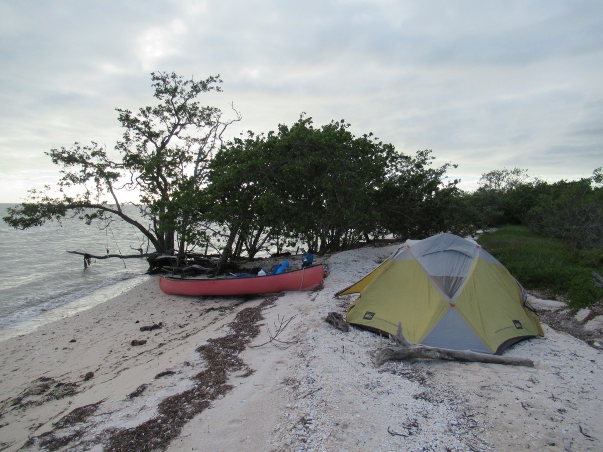 The mosquitoes thankfully weren’t quite as bad the next morning, plus we were prepared for them now, and we quickly broke down camp to get to the rangers station to get the proper backcountry camping permits. The station opened at 8am, and we had a rough idea as to where we would like to stay. The Everglades has a wide variety of beach, ground, and platform (called chickees) canoe-in sites. The park reccomends planning about 8-12 miles a day, so we had hoped to link together a 2-3 night trip on camping on chickees in the mangroves. Neither of us wanted to paddle on the open water (and now I was worried about sharks!), but after consulting the rangers, tide charts, site availability, and winds we somehow came out of the station with a whole different plan. Instead, we were to paddle about 11 miles hugging the coast in Florida Bay (i.e. open water) to make camp at East Cape, a beach site pretty much at the southernmost point of mainland Florida. We’d spend two nights there, and then return the way we came. On the middle day we’d explore the mangroves through a channel not to far from our site. I was a bit dissapointed not to sleep on a chickee in the mangroves, but the rangers assured us that our beach site would be more comfortable as there would be less mosquitoes (a trade-off I was more than happy to take).