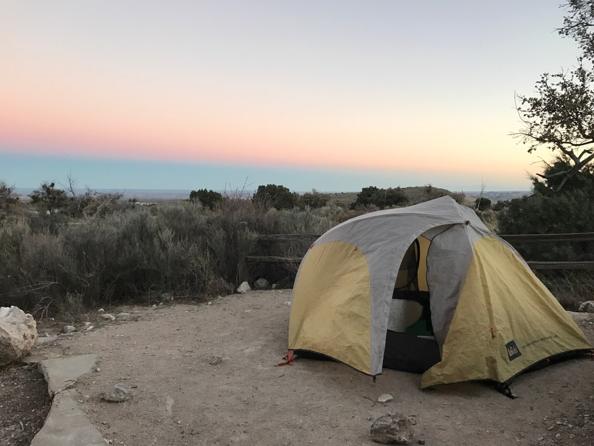 We arrived at Guadalupe Mountains National Park (Texas) shortly before 5:45pm; or at least that’s what time we thought we’d arrive. We were surprised to see shortly before the park that we crossed into the Mountain Time Zone, so it was actually 4:45pm. It was also in the 40s heading towards the low 30s as the sun set, a far cry from the 60s in Big Bend; making it seem much farther away than the easy four hour drive. We bundled-up, set-up camp and ate some macaroni and cheese before crawling into the warmth of our sleeping bags.