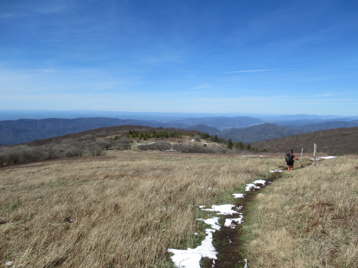 Most of the time the trail feels like home, but every once in awhile it makes me feel like a stranger. At the close of our third week on the trail I anticipated I’d be in my hiker grove, but day 21 felt long and arduous. We’d hoped to get over twenty miles in, but the first fifteen were mostly uphill- and not the fun kind either! The trail seemed like it couldn’t make up its mind, sometimes it was straight-up and to the point; other times it meandered on the side of the mountain, seeming never to reach where it was trying to go. That morning we had slushy snow to walk on, the afternoon the trail was a muddy mess. Not all was lost though, we managed to eek out a little over 17 miles, the weather was beautiful, and the day pulled together in the end. A bad day of hiking is still pretty good! Around lunch we stumbled upon some trail magic, and met Quiet Paul who served us each a larger plate of eggs and hash browns than I ever could have expected. Garrett thinks he gave us 4 eggs each, and a heaping pile of potatoes. He also had PBR, soda, and oranges. Beer and eggs make a heck of a hiker lunch! Much thanks to Quiet Paul, who hiked the trail in 2007. As I mentioned, the rest of the day was uphill, until we got to Bald Mountain with some splendid views. After that it was finally time for the downhill, we made it a few more miles before settling into Whistling Gap for the night.