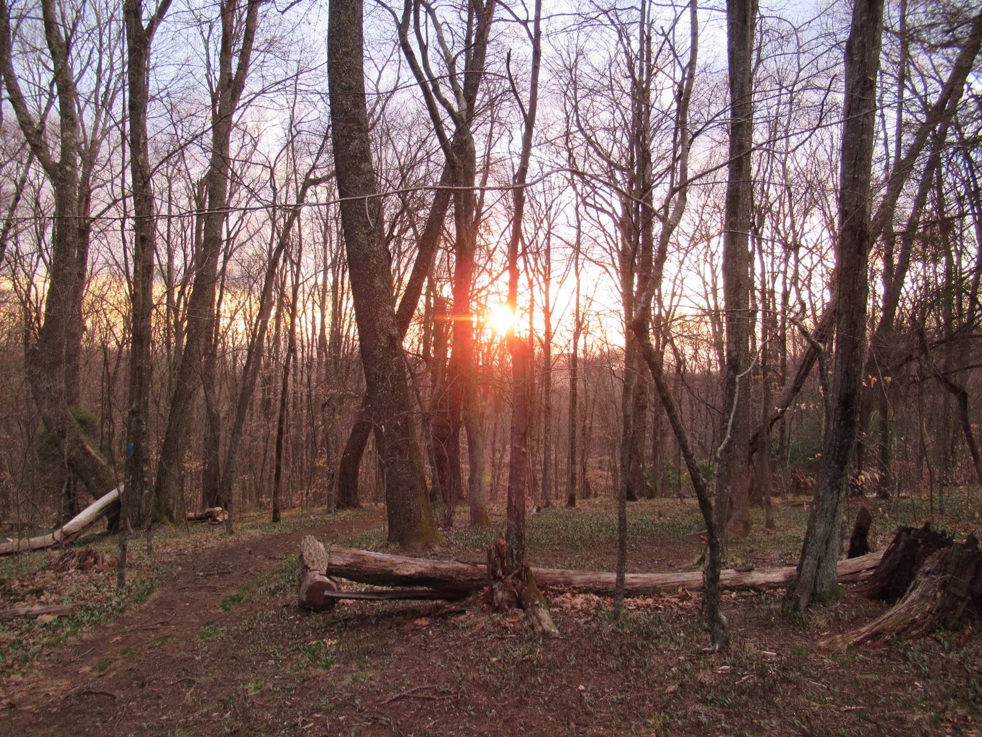 Even better than trail magic though, we climbed over Eunaka Mountain. The summit is a dense spruce forest, and felt quite magical in its own right. We were so taken by it, we forgot to take any pictures! Oh well, we soaked it up while we were there. That night we caught a pretty sunset through the trees at the shelter, though. Soon views like these will be blocked by green leaves when they finally decide to come out! Despite warnings of lots of mice in the shelter logbook, we slept well without incident, kept safe from mice by a fellow thru-hiker’s dog, Aspen.