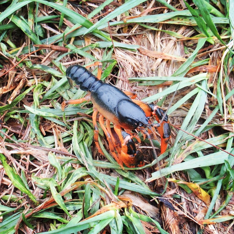 Along the way, we also stumbled upon a crawfish walking along the trail! We weren’t near any water, although the ground was soaked, and couldn’t figure out how it got there. We though that a bird may have dropped it, but another hiker suggested posited another theory. They said that crawfish often search out a better habitat during wet conditions, and added that the reddish color on its sides may indicate that it is also looking for a female mate. They added that some species of crawfish even burrow in the ground, not needing a body of water at all. Nature is cool!
