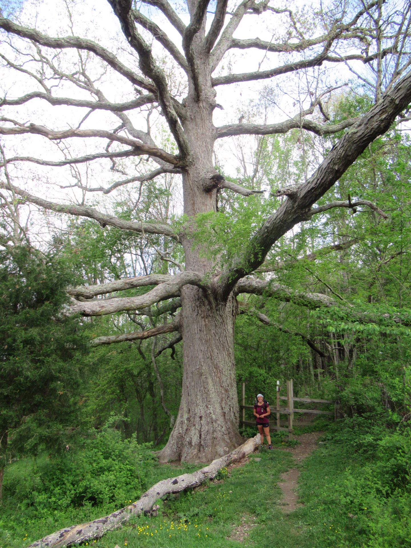 After the heat effected me the day before, I resolved not to let it happen again. I drank a lot of water the night before, the following morning, and throughout the day. My efforts seemed to pay off, and I definitely felt better. We still had a few unplanned breaks throughout the day though. First we walked by the 300 year old oak pictured above, and marveled at its thick trunk like branches. Later we came across banana and Little Debbie brownie trail magic by a road crossing, so we took a break to enjoy those. Shortly after that, Garrett’s shoe ripped by two inches on the toe. It had happened a couple days before on the other shoe and I had sewed it up later, but this rip was worse and his toes kept coming out of his shoes so we stopped again to mend it.