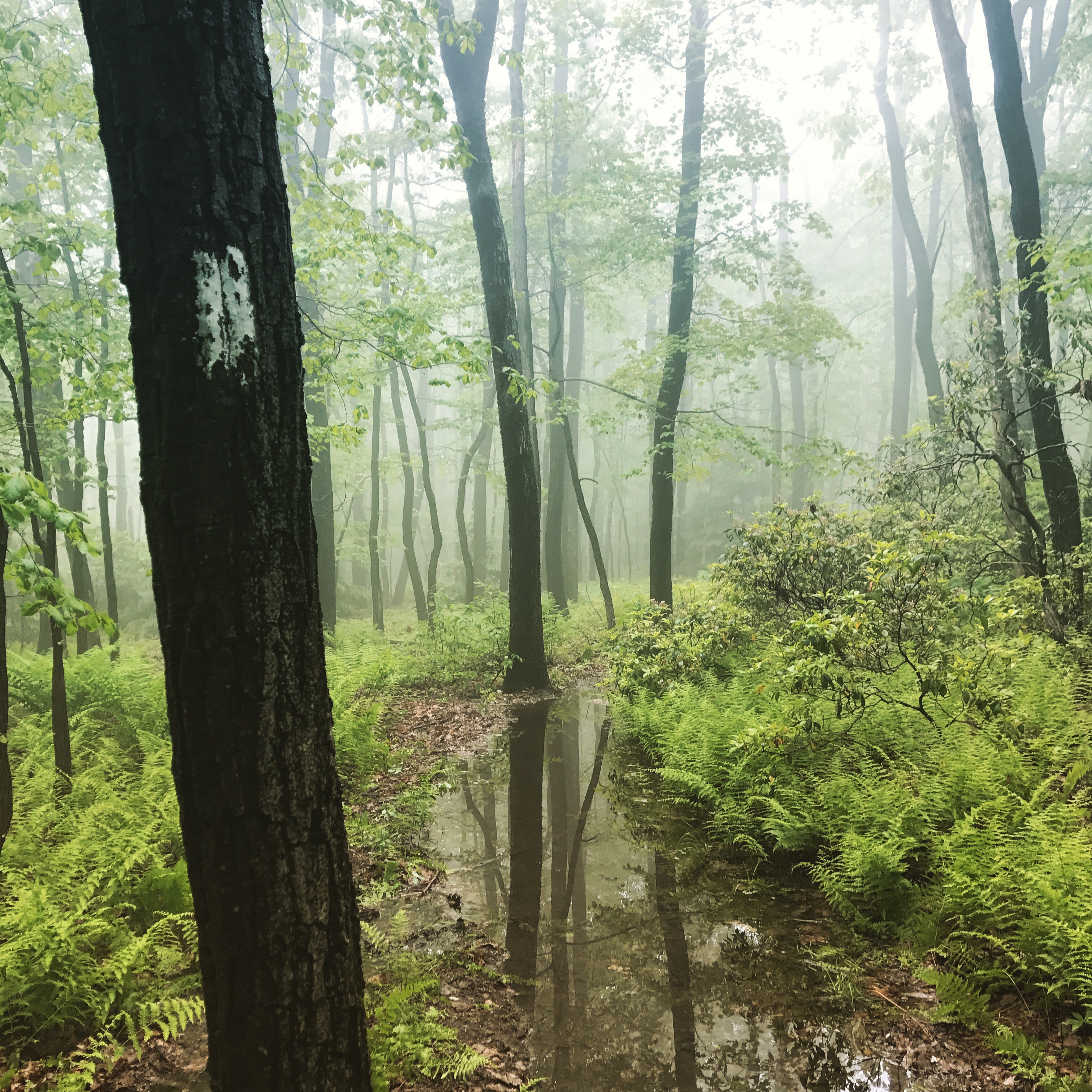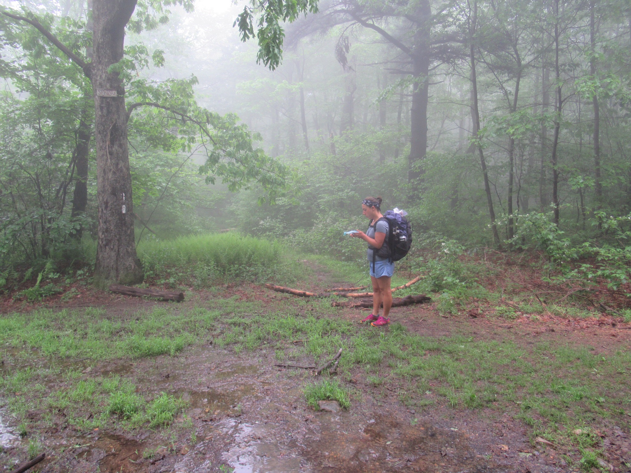 We had a great two days visiting my mom at our lake house. It was hard to leave, but the trail was calling. We arrived back to the trail around 2pm, and walked into the misty woods. It had rained hard the night before, and parts of the trail were completely swamped.