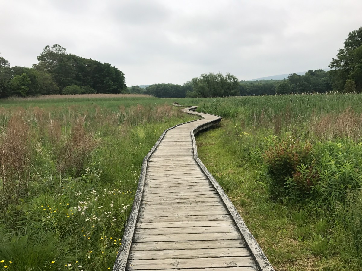 We made it to Unionville, ate copious amounts of pizza and resupplied, then got and a ride to our hotel where we escaped the heavy overnight rains. They stopped by the next morning, and we were back out on our trail enjoying the last full day of New Jersey. We hiked over a boardwalk for nearly a mile through marshland, and saw many birds. We identified a Prarie Warbler by song using my birding app on my phone. The call is an ascending trill, and very distinctive, but the warbler itself has only given us a few glimpses of its yellow-green feathers.