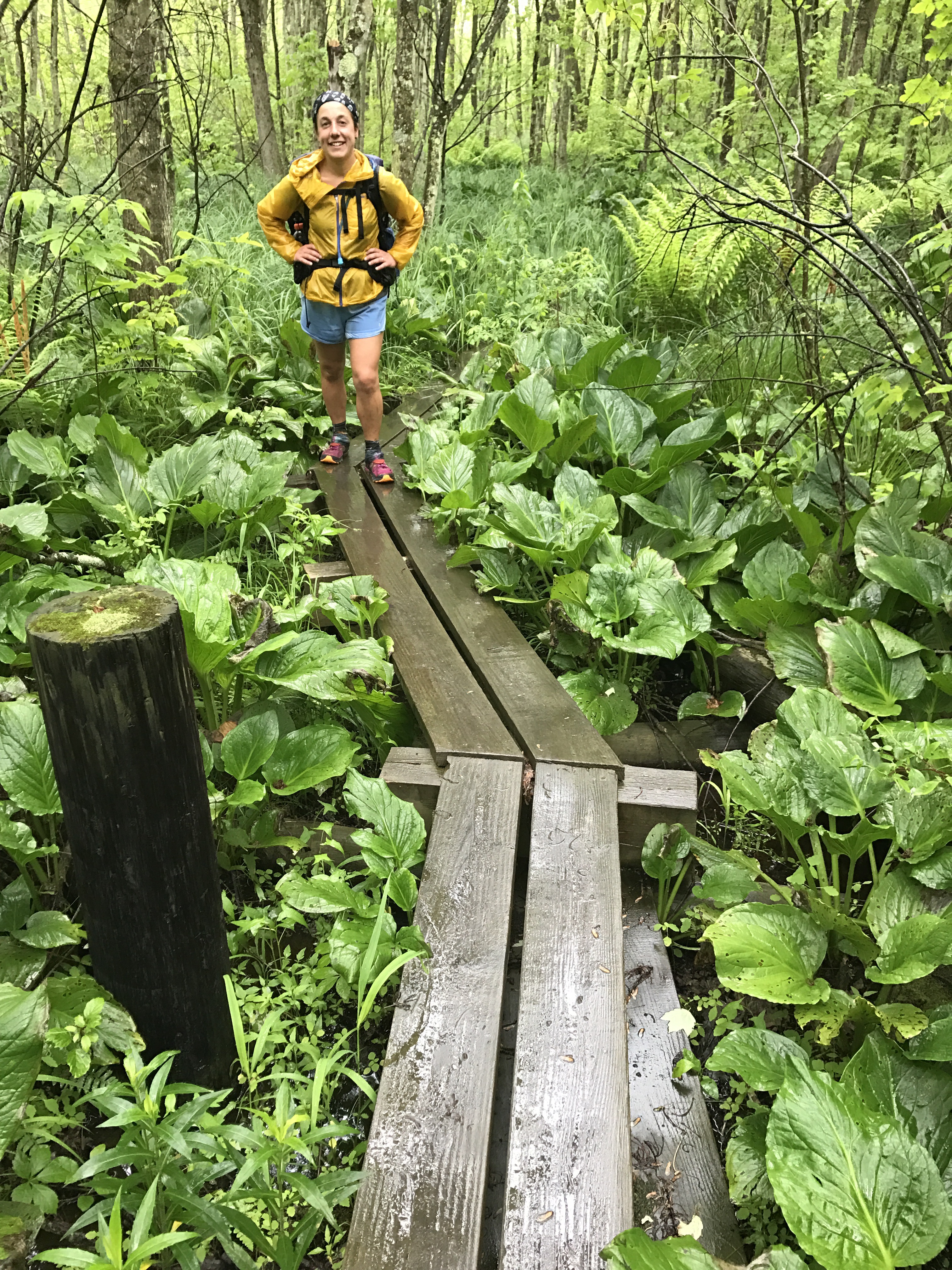 We made it to Unionville, ate copious amounts of pizza and resupplied, then got and a ride to our hotel where we escaped the heavy overnight rains. They stopped by the next morning, and we were back out on our trail enjoying the last full day of New Jersey. We hiked over a boardwalk for nearly a mile through marshland, and saw many birds. We identified a Prarie Warbler by song using my birding app on my phone. The call is an ascending trill, and very distinctive, but the warbler itself has only given us a few glimpses of its yellow-green feathers.