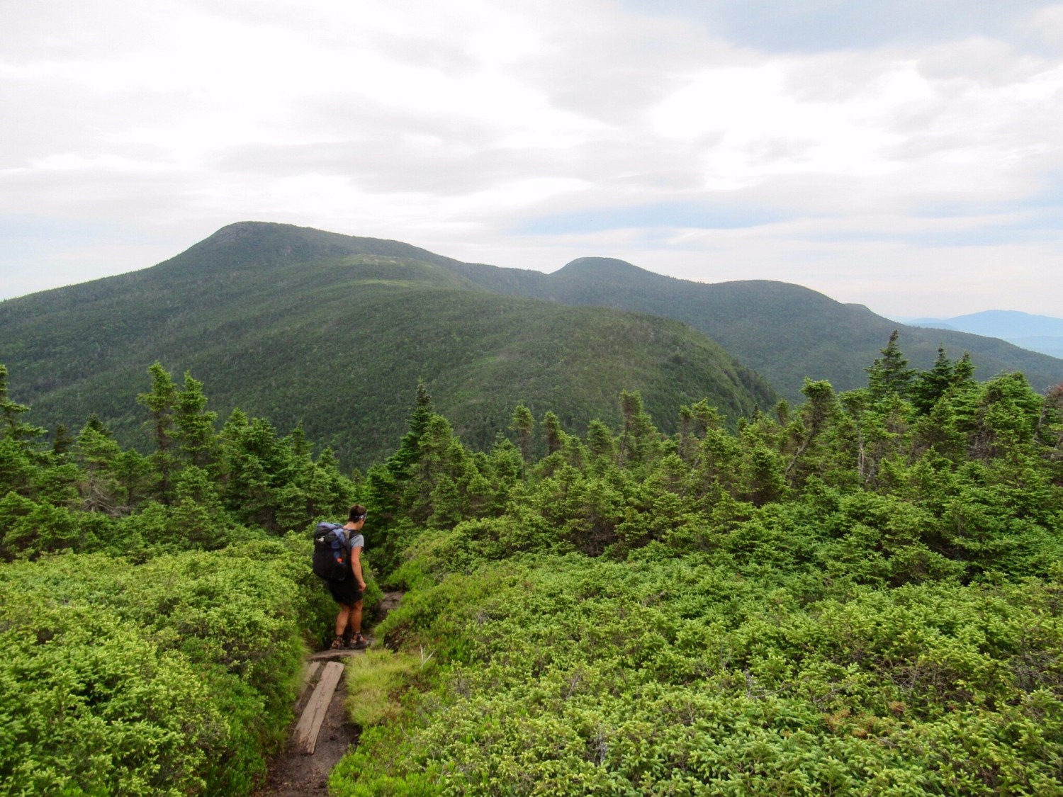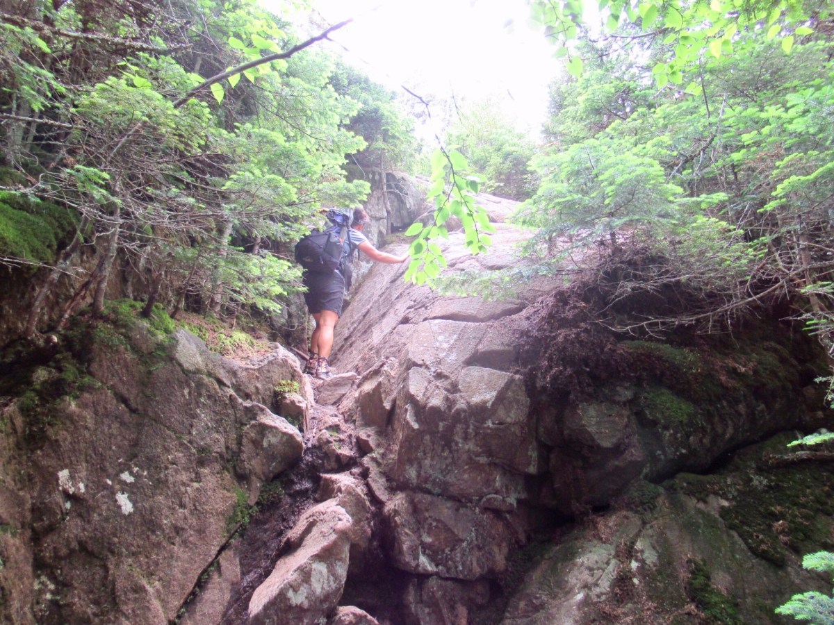 We checked into our hotel for two nights, and took a zero the following day. We’re well familiar with Gorham, we drive through here frequently when we go hiking in the White Mountains. It was strange to spend time in a town that we usually just stop in briefly for a post-hike meal at Mr. Pizza, but enjoyable none the less. We relaxed and resupplied, and the next morning our friend Beau picked us up on his way to work and dropped us off at the trailhead. The day was overcast, but fortunately it never rained. We spent the day climbing up and down through the beginning of the Mahoosuc Range, one of the gnarliest sections on the Appalachian Trail. The trail either is granite rock or a mess of roots, and verges on some light rock climbing.