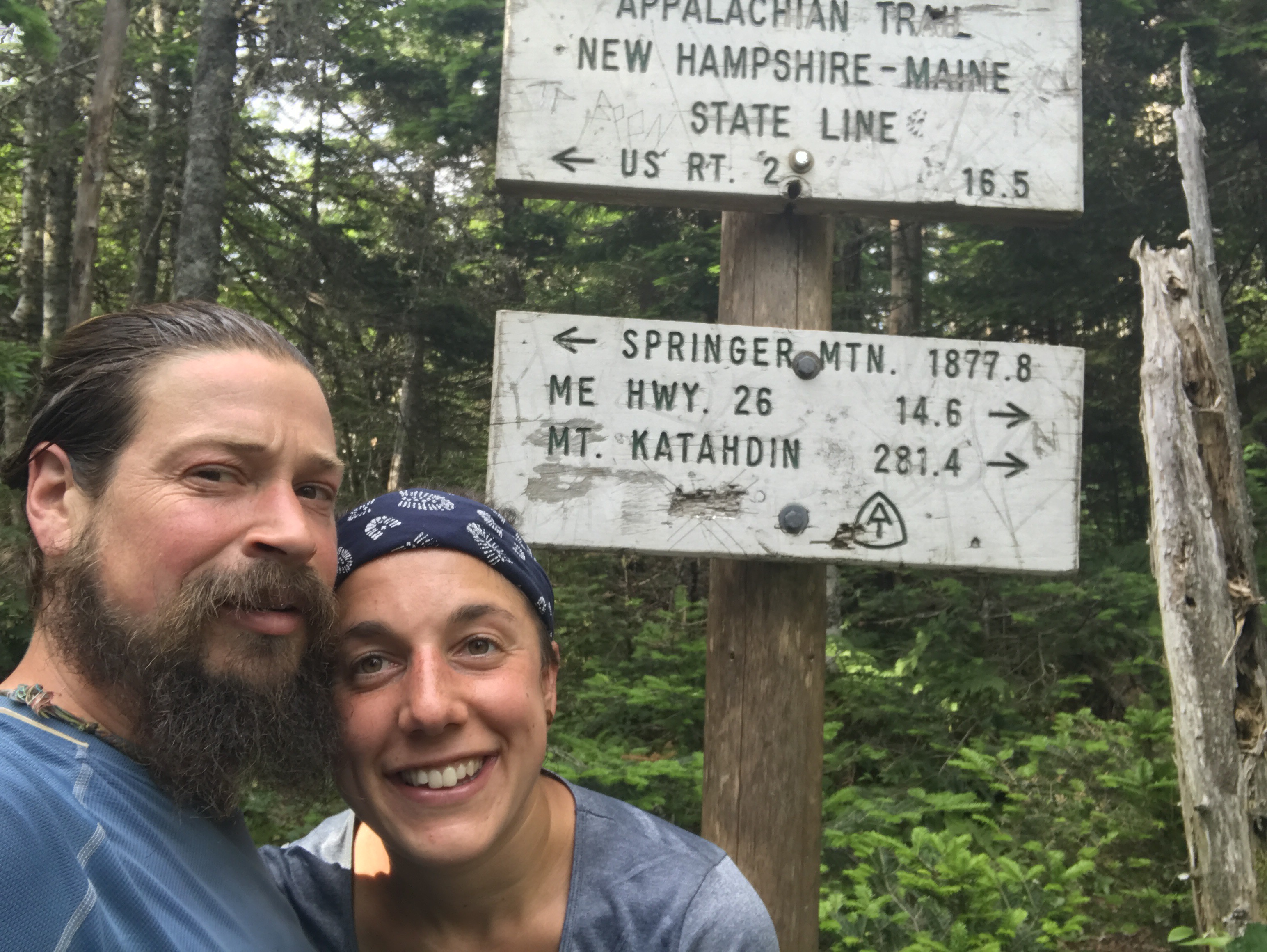 Late in the afternoon, we reached the Maine border. While I feel so fortunate to be physically and mentally able to hike this trail with Garrett, lately I have not been feeling very grateful about the entire experience. Maybe it’s because it has rained nearly 40% of the days we’ve been out here, or the fact that I’ve hiked most of the trail north of Mt. Greylock to this point, or because I’m tired of fending off black flies; but regardless, it hasn’t been bringing me much joy. Making it to the Maine border didn’t completely turn my attitude around, but it certainly helped motivate me for the remaining 281.4 miles. I know I will miss the trail when we’re gone. The saying on the AT is, “No rain, no pain, no Maine.” Well we’ve reached Maine, so maybe the rain and pain could stop for the next couple of weeks? If only!
