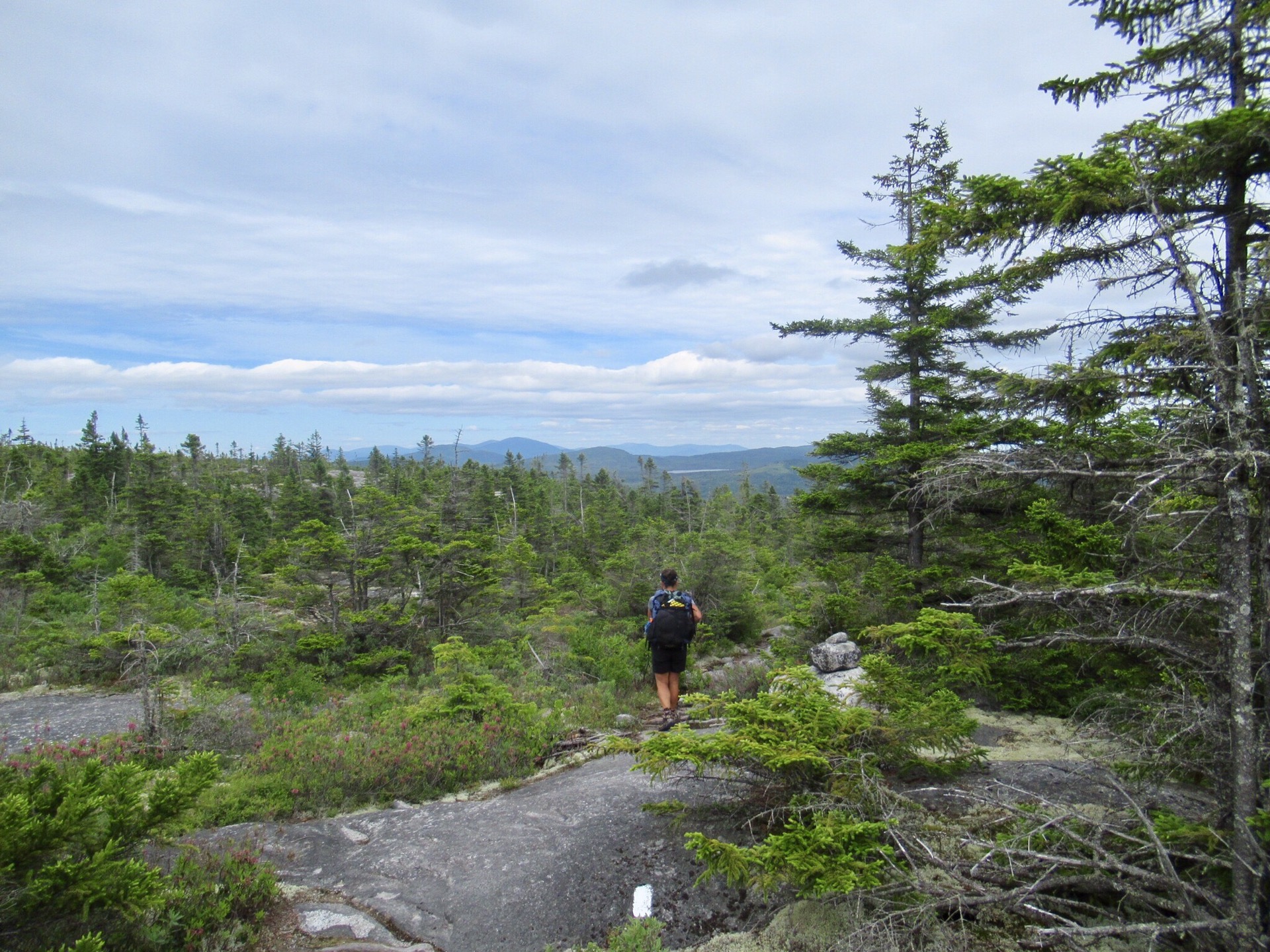 It sprinkled overnight, and more rain was threatened for later in the day, so we put a hot foot to it leaving the shelter to make it over the Baldpates. I’ve hiked these mountains before, and they are beautiful. The terrain looked like it evened out a bit after the Baldpates, but proved itself to still be challenging despite lacking steep trails. After the exposed granite slabs of the Baldpates we descended into the thick Maine forest, and stayed amongst the quagmire of knotted roots and mud for the remainder of the day.
