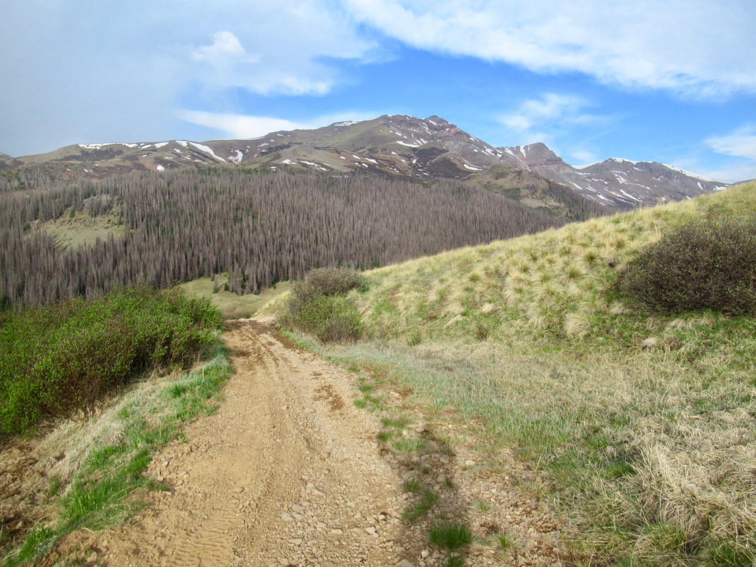 It was a steep climb up a Jeep road, and we quickly made it back to the CDT. This part of the CDT is also the Colorado Trail, and in a couple miles we made it above 13,000ft for the first time on the trail. The point happens to be the highest point on the Colorado Trail. The weather was starting to grow bad, and it was getting increasingly windy and cold, so we hurried down. We only made it a couple of miles before wet snow started to fall, and we threw up our tent because we were getting very cold.