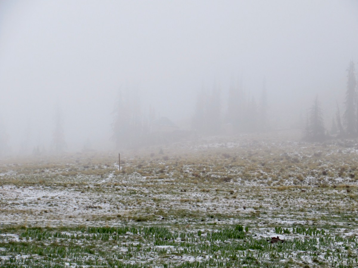 We had hot lunch and tea to warm up, and listened to a podcast to pass the time. We had cell service, so I was able to catch up with my Mom who was in Spain. Crazy what technology can do! The snow stopped, and we decided to continue on to a lower elevation. There was a yurt in about 3 miles, but we were unsure if it was open.
