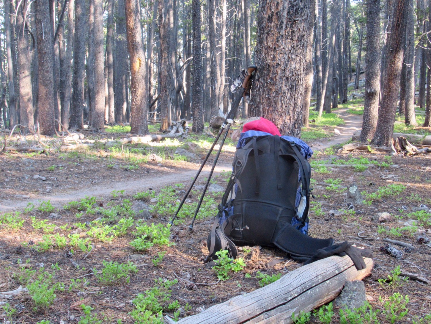 We stopped for lunch after about 12 miles, and it was clear we’d have plenty of time to make it to the pass. We saw our first CDT hiker of the day, Gasket, and he stopped to eat lunch with, too. Afterwards, it was another short climb, then we rolled along open ridge to the road.