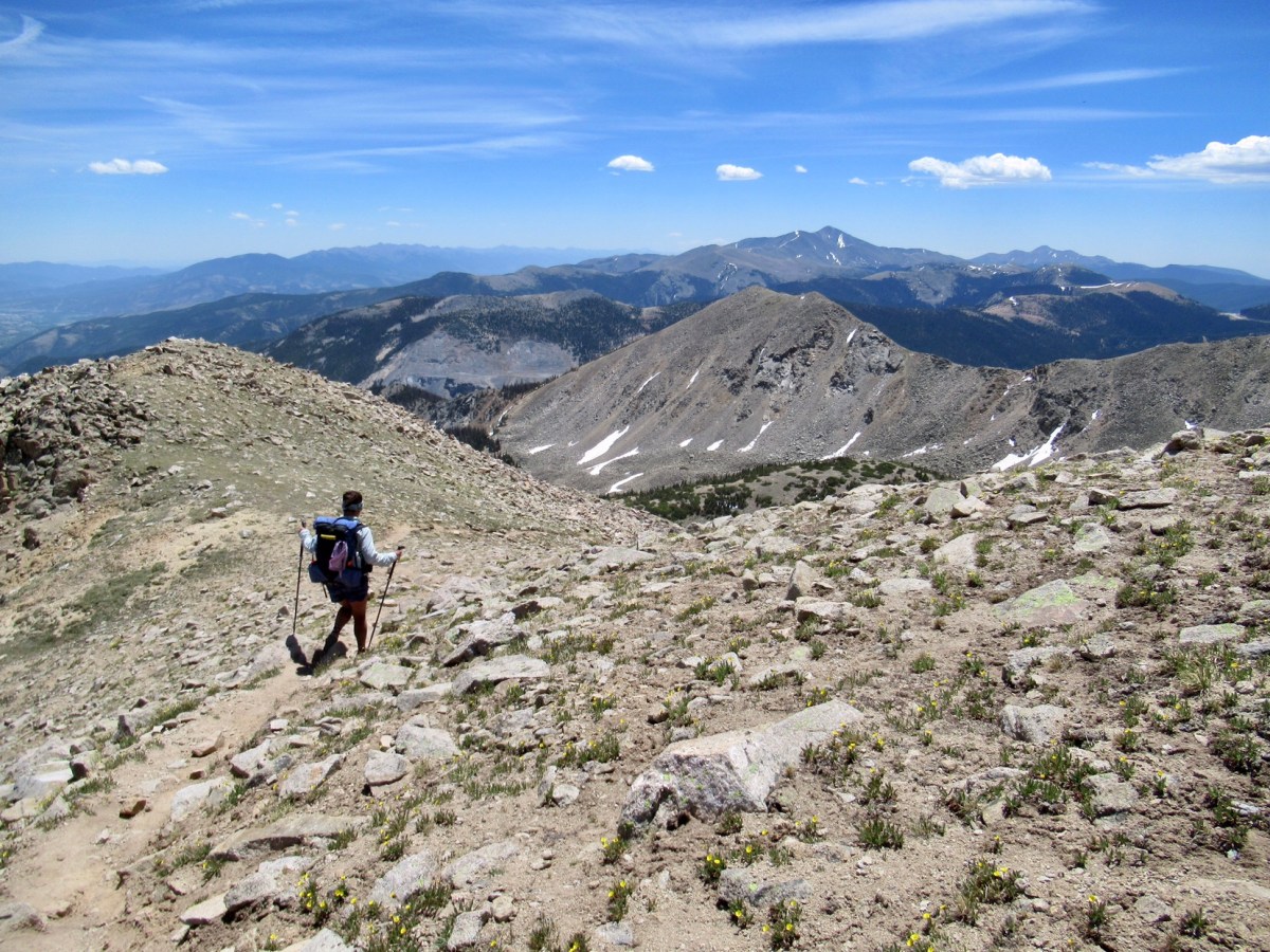By the time we started climbing up to Chalk Pass I was ready for it, and it was a beautiful hike up through a scree filled bowl. We didn’t see any other CDT or Colorado Trail hikers all day, but we did see some backpackers and day hikers, the last of which we met coming down from the pass. We chatted with him for a bit, then parted ways and made it to the pass soon after.