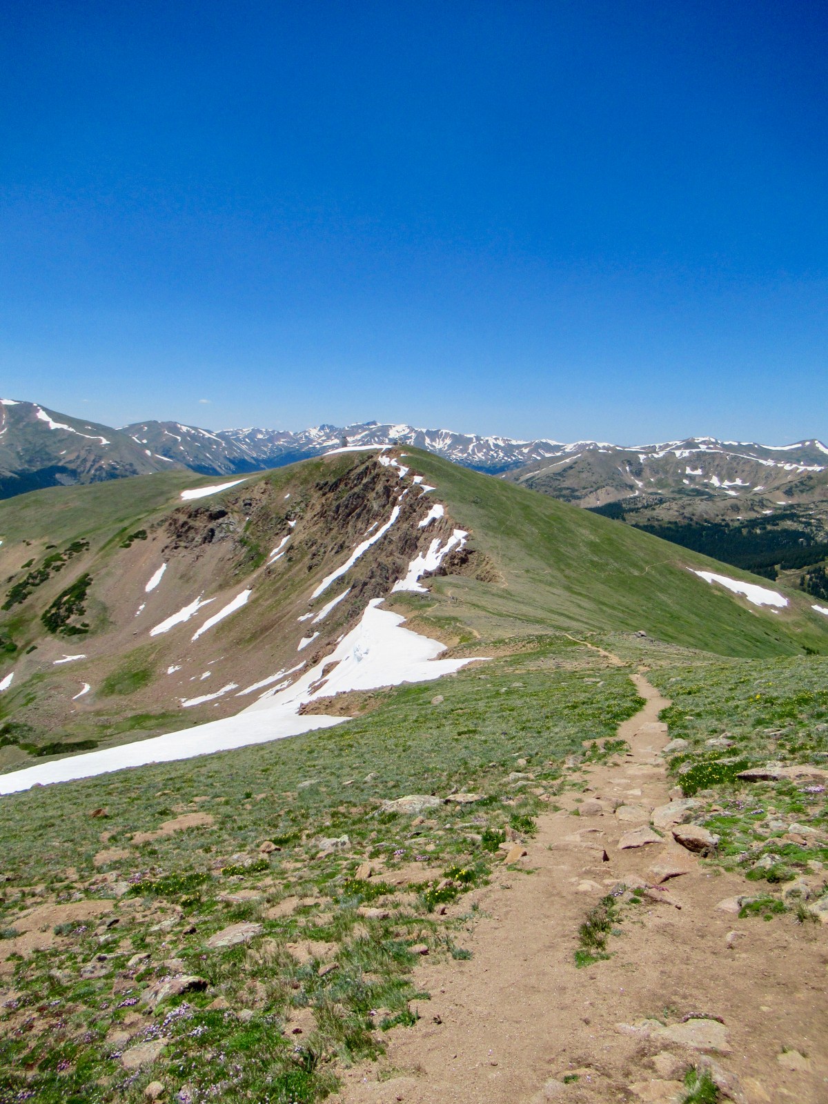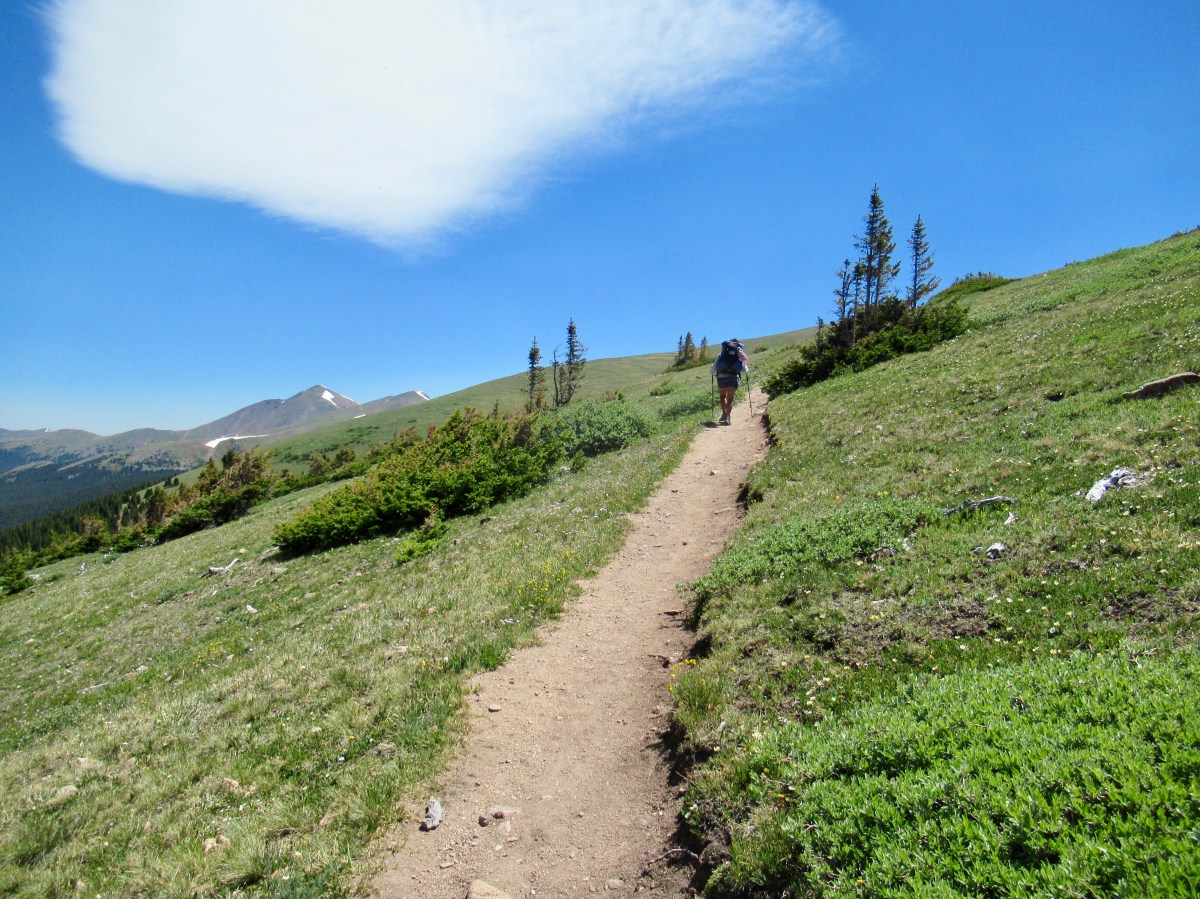As we started the 3.5 miles up to Berthoud Pass, where the CDT crosses the road, we discussed our options. I was nervous about the section coming up, it was 14 miles of rugged trail with two peaks above 13,000ft. There also didn’t look to be a good place to camp for several miles after the last peak, and I was worried about that as well. We thought we had enough food to get to the next town of Grand Lake, but if things didn’t go well today, we may not.