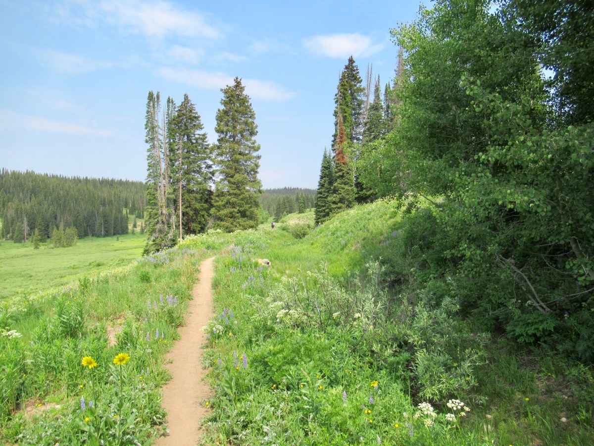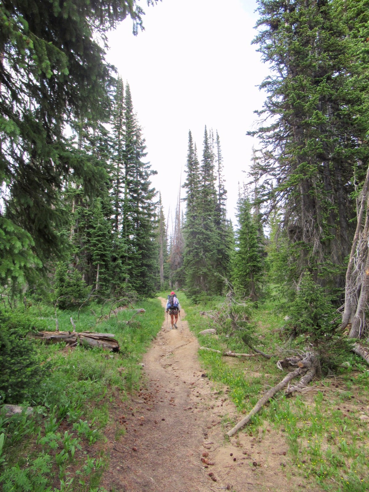 The trail soon diverged from Route 40, and we walked on a seldom used forest service road up to Dumont Lake where we turned onto trail. The day was supposed to be in the 90s in town, and I was happy to be hiking uphill to higher elevations and hopefully cooler temperatures.