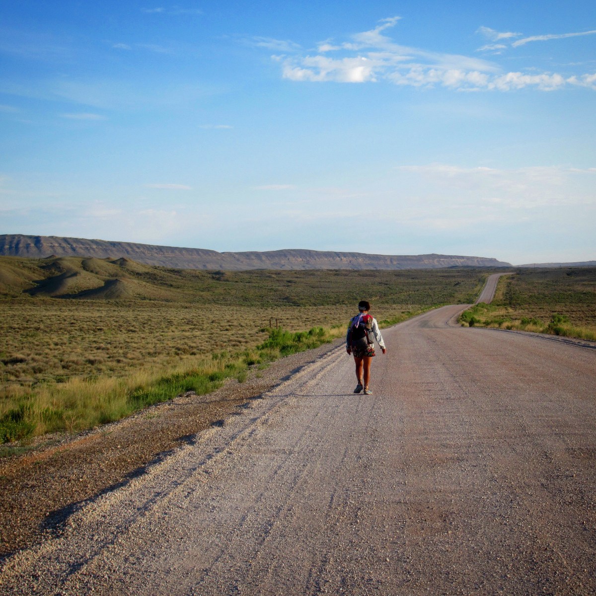 At 2 Bad Dogs car they shared some soda and an apple with us, and which we were very appreciative of! From there, we readied ourselves for a 36 mile road walk into the town of Rawlins. The “official” CDT in this area is actually 20 miles longer, but also follows mostly roads and had even less water. Some of the water is alkaline and can cause GI distress. That way didn’t even sound fun if I wasn’t pregnant, so we decided to take the shorter road walk that had a little more water. Even at that though, we’d still have to carry water for 22 miles.