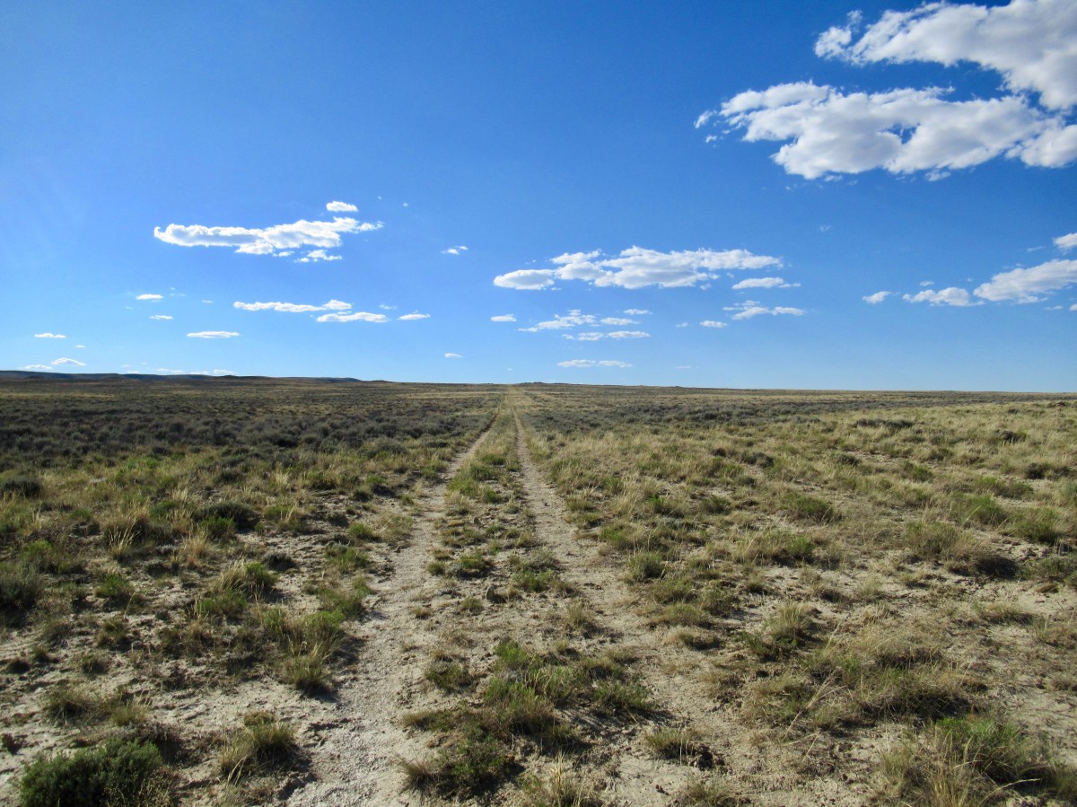 We headed back up to the room, and by 7:30am we were on our way out of town and back into the wide open expanse of the dry Great Divide Basin. On our day off I had consulted our maps and water reports, and charted out the water available to us over the next 120 miles. The water looked to be more frequent than we anticipated, but if we wanted to camp by water tonight we had to walk over 28 miles to get to Bull Springs (or stop after 13). A short day wasn’t an option, and since our pace has quickened on the flat desert roads and trails, we felt confident we’d make the springs by dinner.