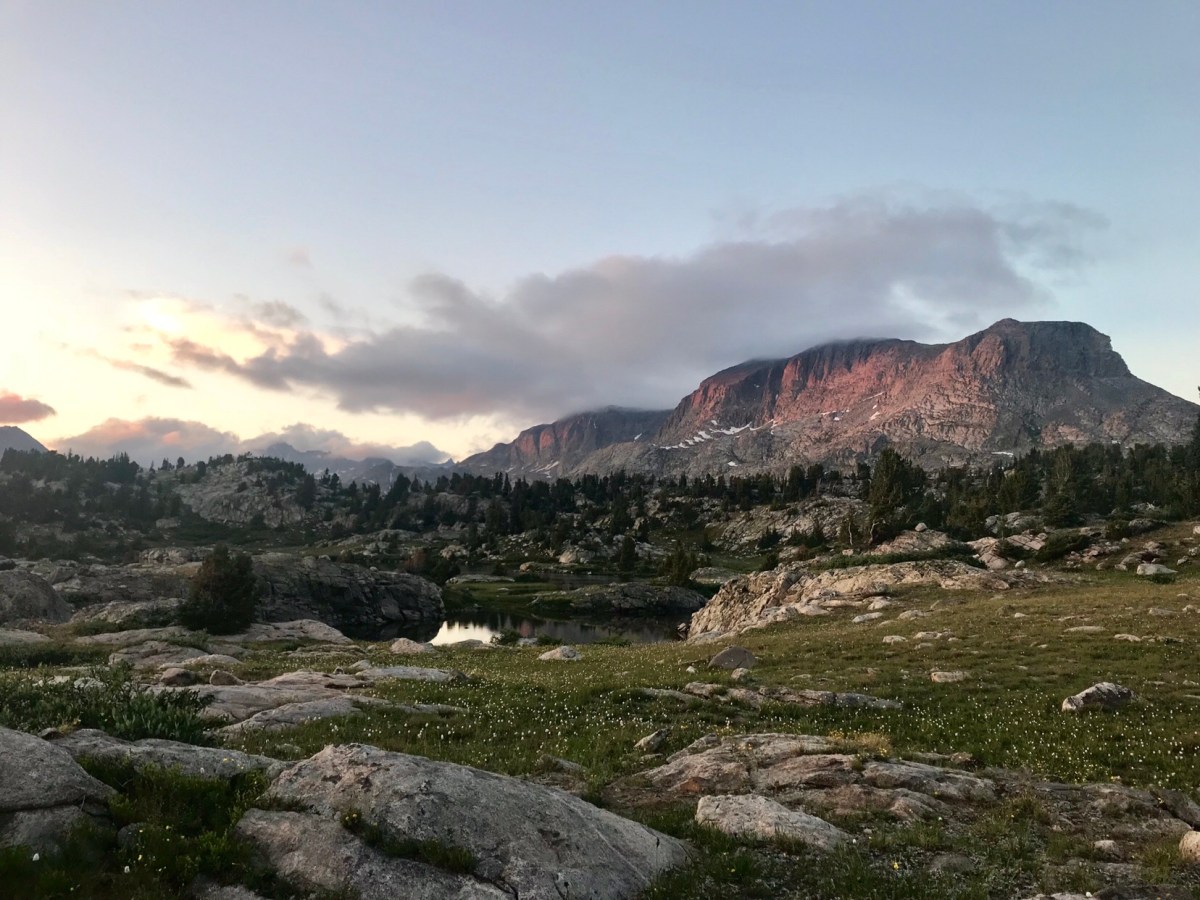 The last climb went better than the middle, and afterwards we started looking for a camp spot. We were surrounded my mountains and lakes, and we set up camp on a grassy patch of land. We knew we’d be covered in dew the ext morning, but we were going into town the next day and it was such a beautiful spot we didn’t care. We set-up camp and crawled into our tent, enjoying the views from the open fly of our tent. It was a peaceful evening, and I slept easy despite not knowing what would happen the next day. Despite all of our planning, we never really know what’s going to happen tomorrow, anyway!