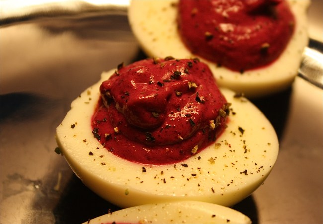 red deviled-ish eggs